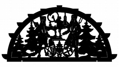 Laubsägevorlage für einen Großschwibbogen. Auf einer A1-Papierrolle sind alle Elemente abgedruckt, um sie nach dem Aufkleben auf einer Sperrholzplatte aussägen zu können. Mit einer ausführlichen Bauanleitung und nur wenigen Kaufteilen fertigt man einen wunderschönen Riesenschwibbogen in kompletter Eigenarbeit.